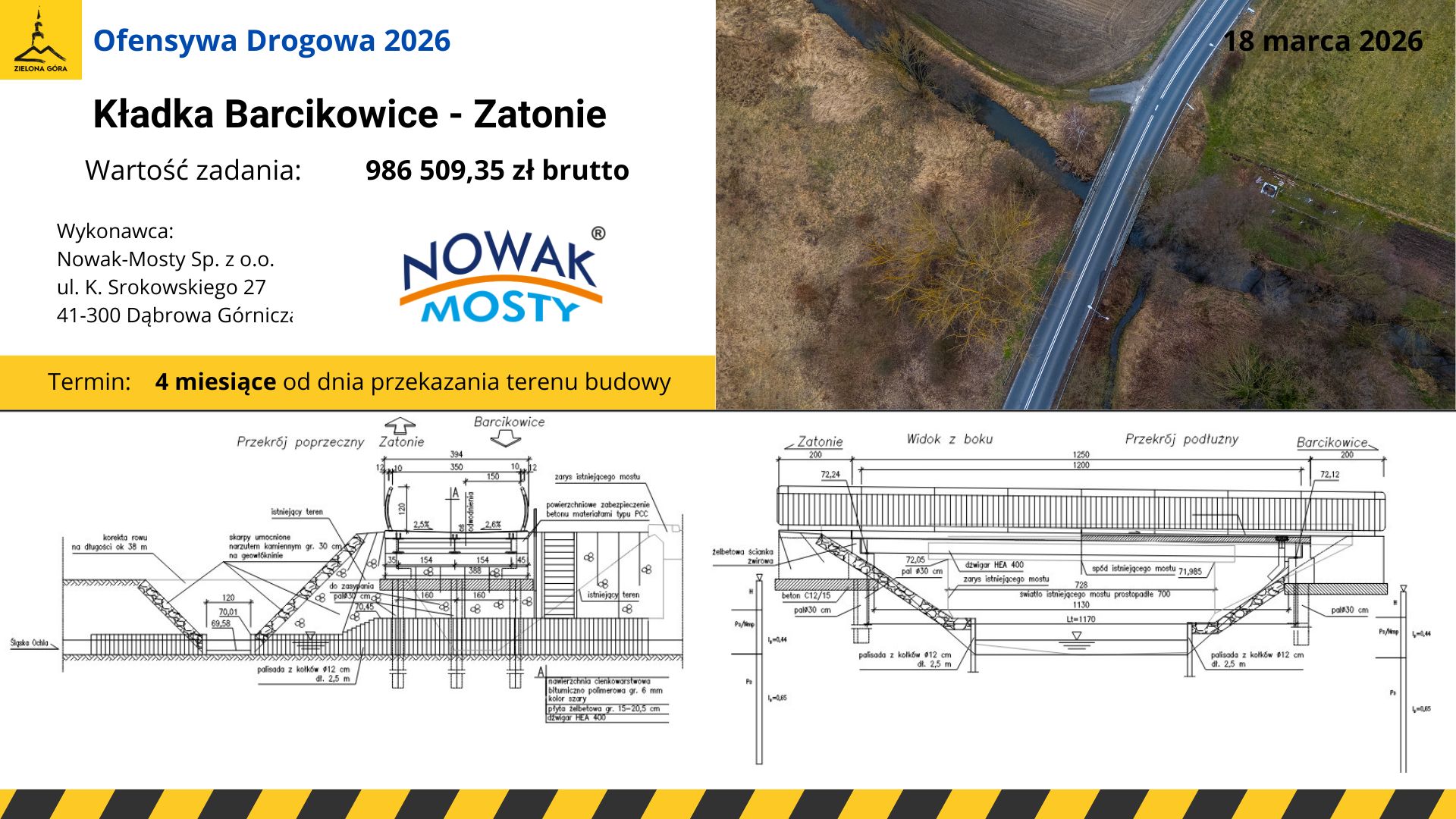 Wykonawcą zadania będzie firma Nowak-Mosty z Dąbrowy Górniczej, która wyceniła prace na około 986 tys. 500 zł. Termin realizacji – cztery miesiące od dnia przekazania terenu budowy.