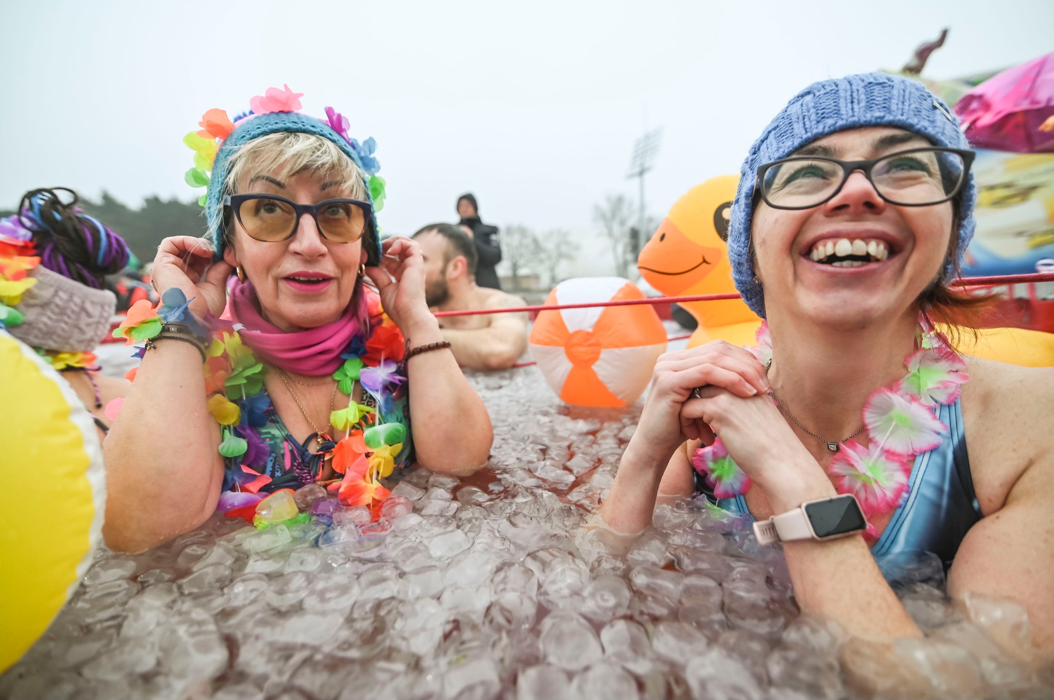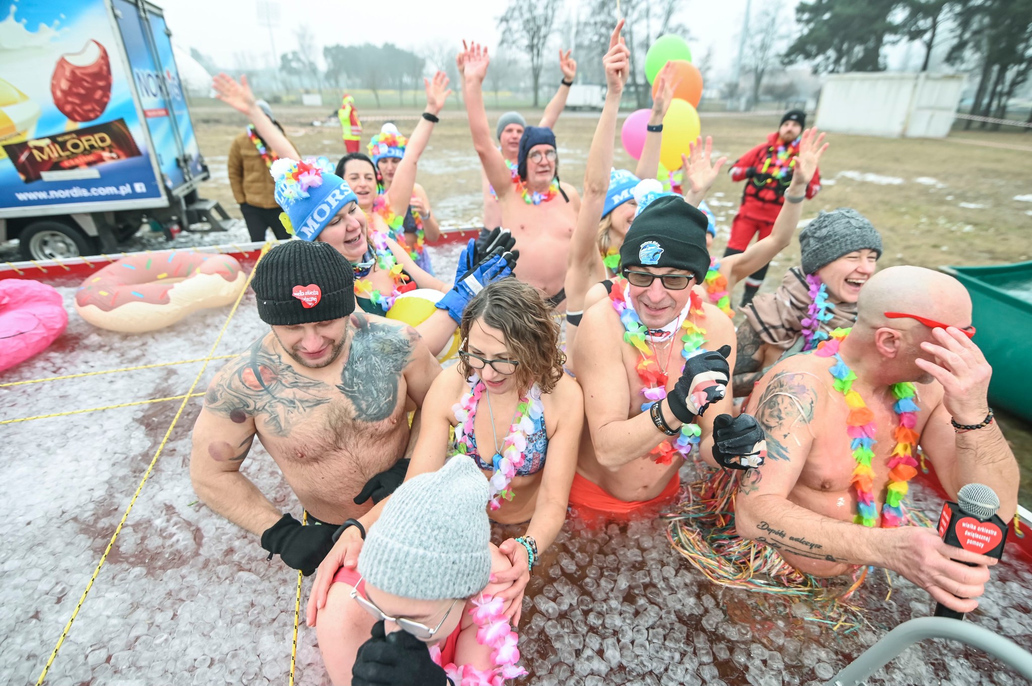 Lubuskie Morsy już od pięciu lat grają razem z Orkiestrą, ale w tym roku po raz pierwszy miejscem spotkania stał się parking przy CRS. Że na co dzień nie ma tam dostępu do wody na świeżym, mroźnym powietrzu? W niedzielę pełną cudów to naprawdę najmniejszy problem. MOSiR rozstawił trzy baseny, napełnił. Zielonogórski Nordis wsypał tonę kostek lodu. I po tanecznej rozgrzewce fani zimnych kąpieli mogli odprawić swój rytuał.
