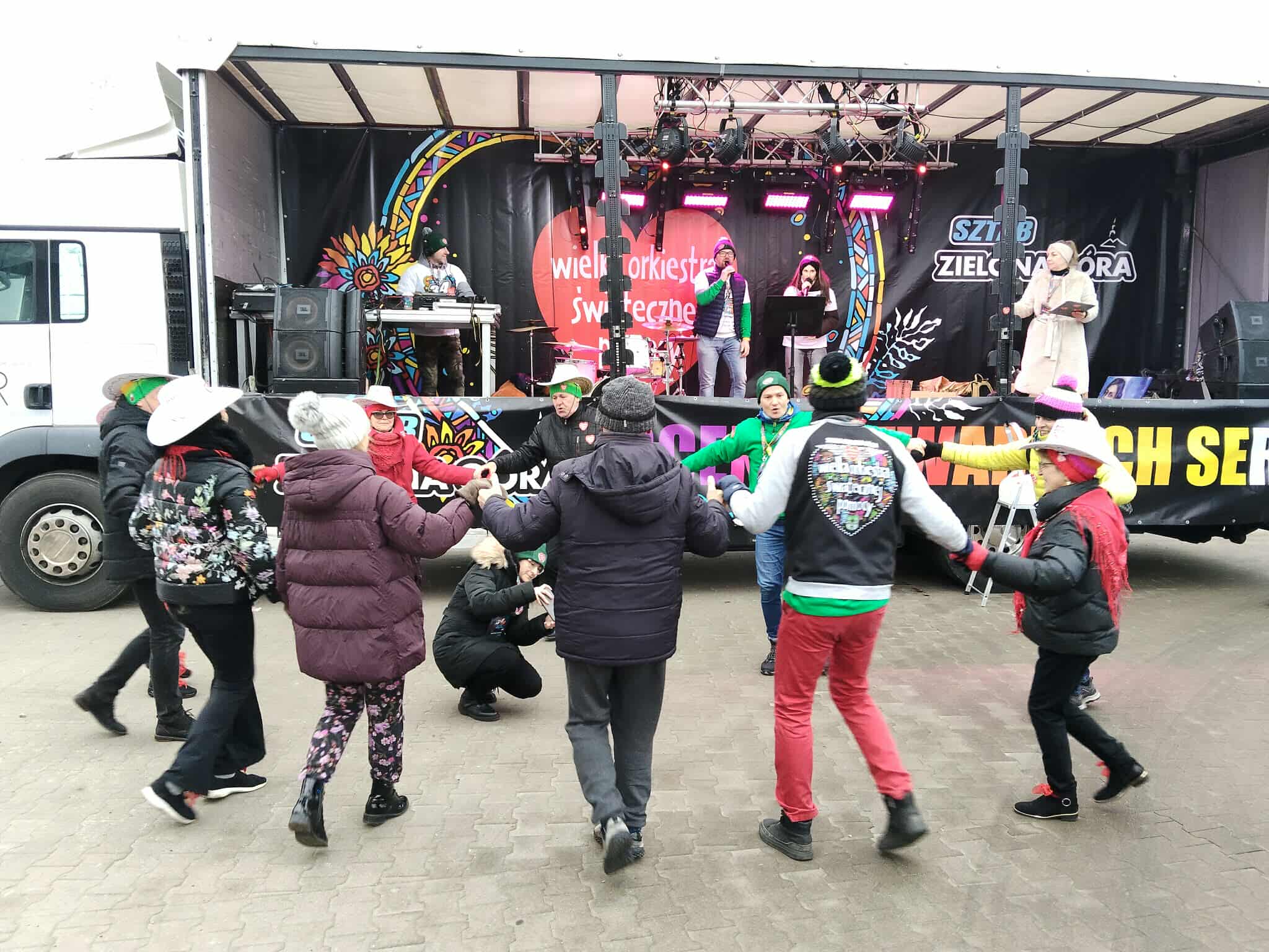 Trudno zaprzeczyć. Przed Biedronką w Raculi, mimo minusowych temperatur, gorąco. Na platformie TiRa za konsoletą stoi DJ Bamse, są też wokaliści. Przy „Jak się masz, kochanie” wśród mieszkańców zaczynają się kółka i wężyki jak na weselu. W tyle nie pozostaje grupa taneczna „Latino”, która rozgrzewa siebie i publikę timbą i sambą. – Wspieramy Orkiestrę od samego początku powstania zespołu, czyli od 2018 r. Tańczyliśmy już przy -5 st.C. Mrozy nam nie straszne – deklarują Małgosia, Jola i Sylwester z „Latino”.
