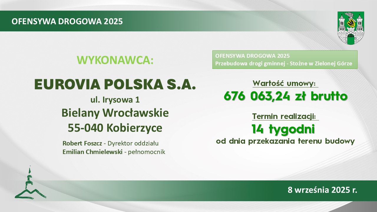 Wykonawca ma dwa miesiące na realizację zadania (od dnia przekazania placu budowy). Wartość umowy to około 497 tys. 145 zł.Marcin Kwapiszewski, prokurent firmy Bud-Dróg z Kożuchowa: – To kolejne nasze zadanie w mieście Zielona Góra. Tym razem troszkę mniejsze, co nie oznacza, że gorsze. Kończymy przygotowania do wprowadzenia tymczasowej organizacji ruchu i przystępujemy do dzieła.