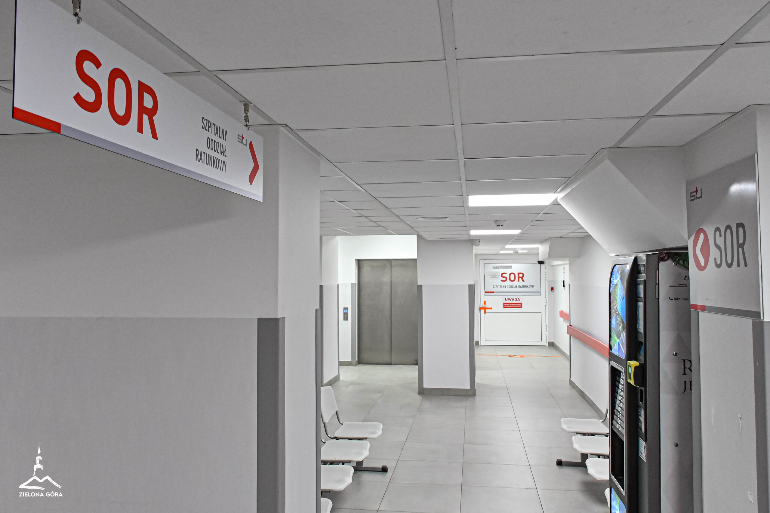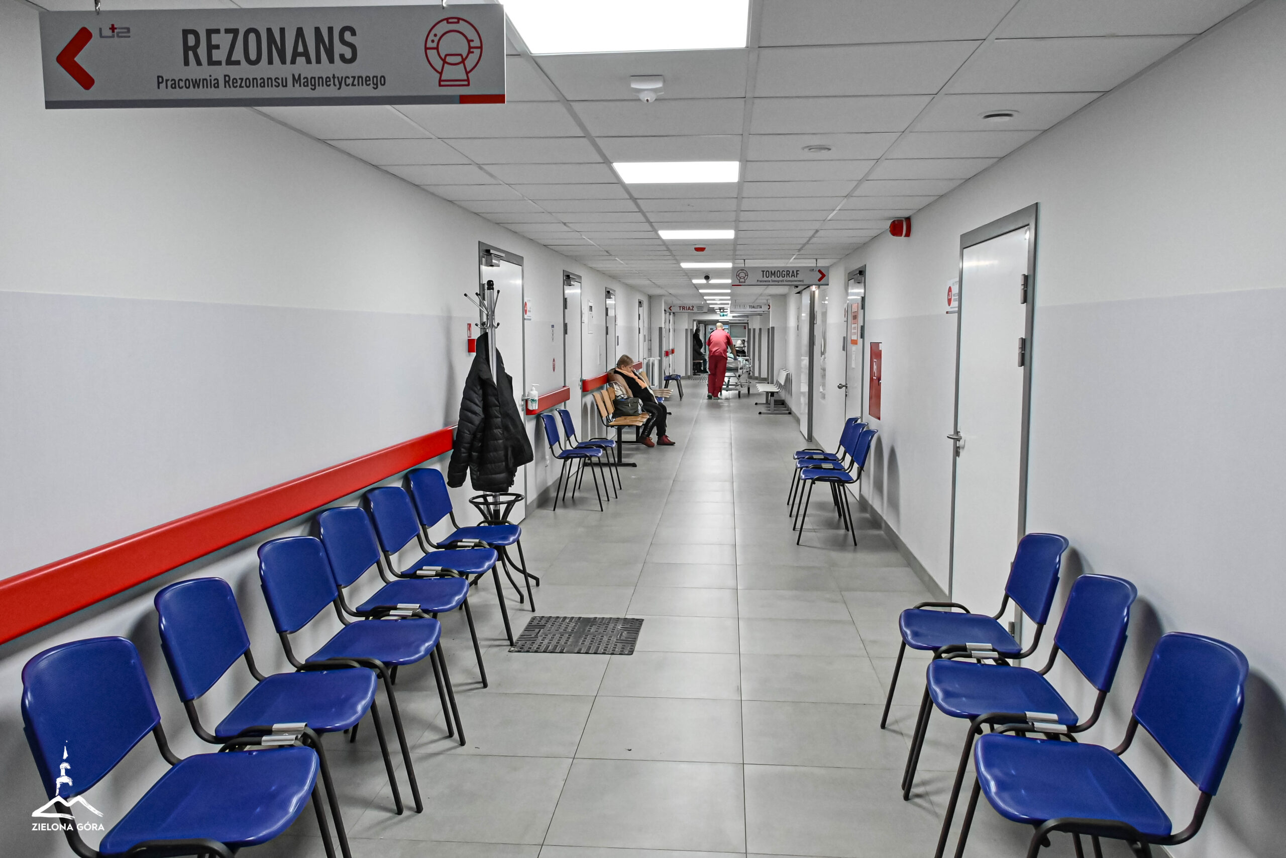 Przestronny, jasny korytarz. Duże tablice informują, gdzie znajduje się Centralna Izba Przyjęć, poczekalnia, pracownia tomografii komputerowej, a gdzie gabinet na triaż, w którym personel medyczny przeprowadza szybką ocenę stanu zdrowia chorych (i na tej podstawie ustala kolejność udzielania pomocy).