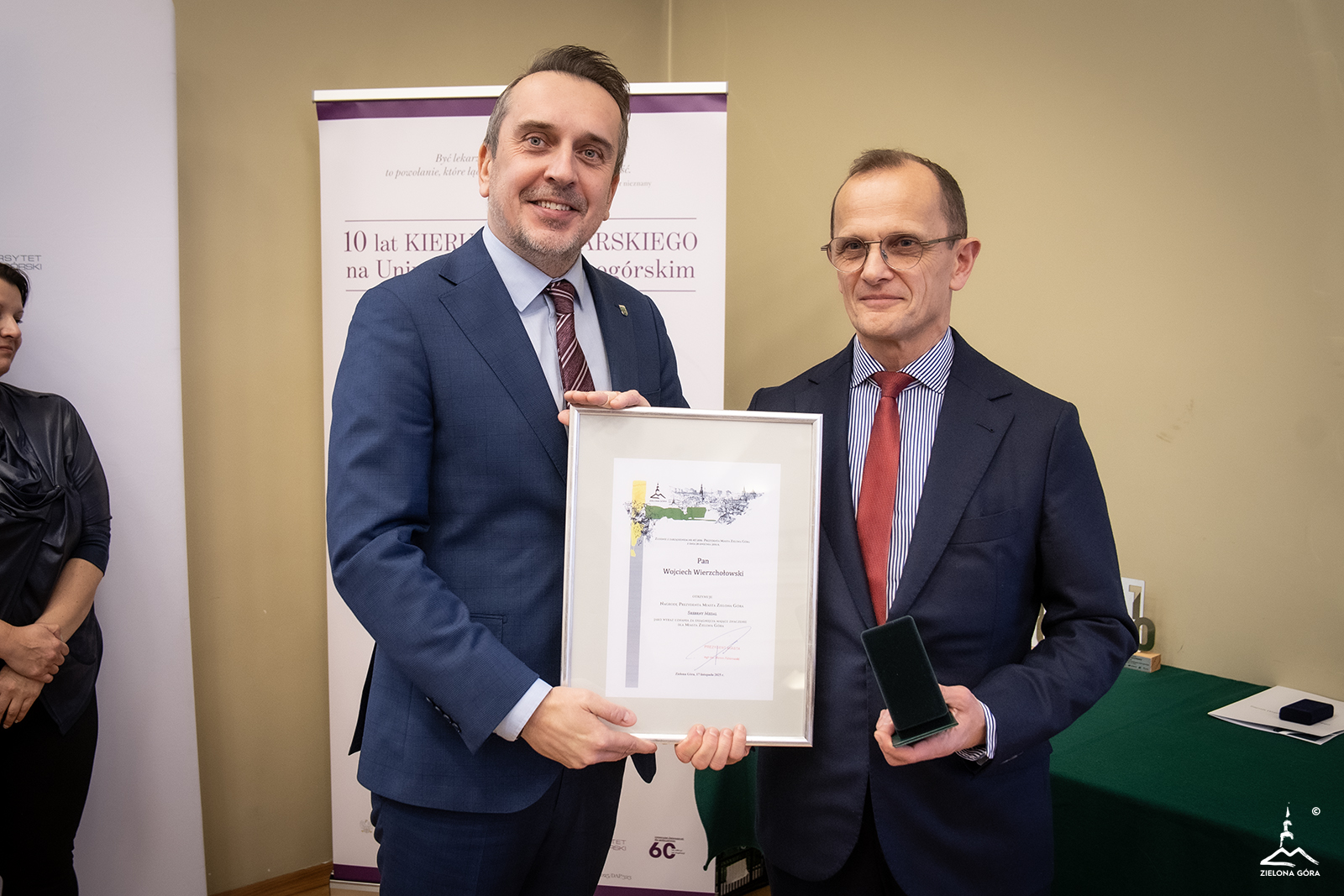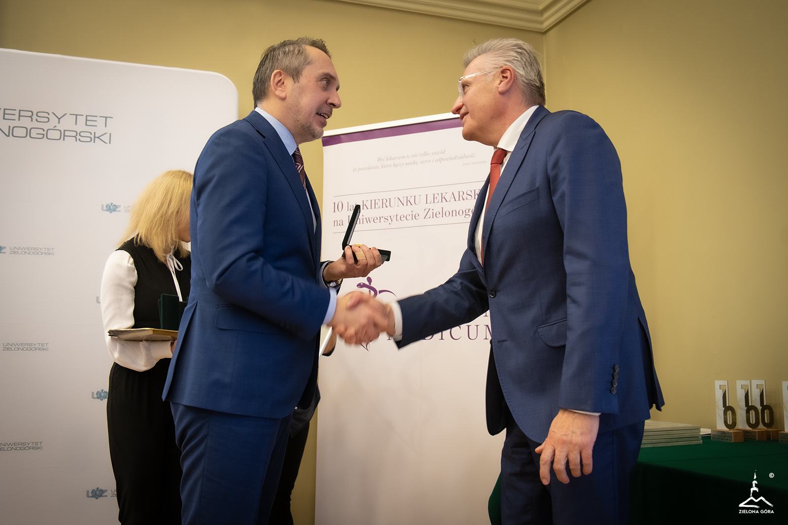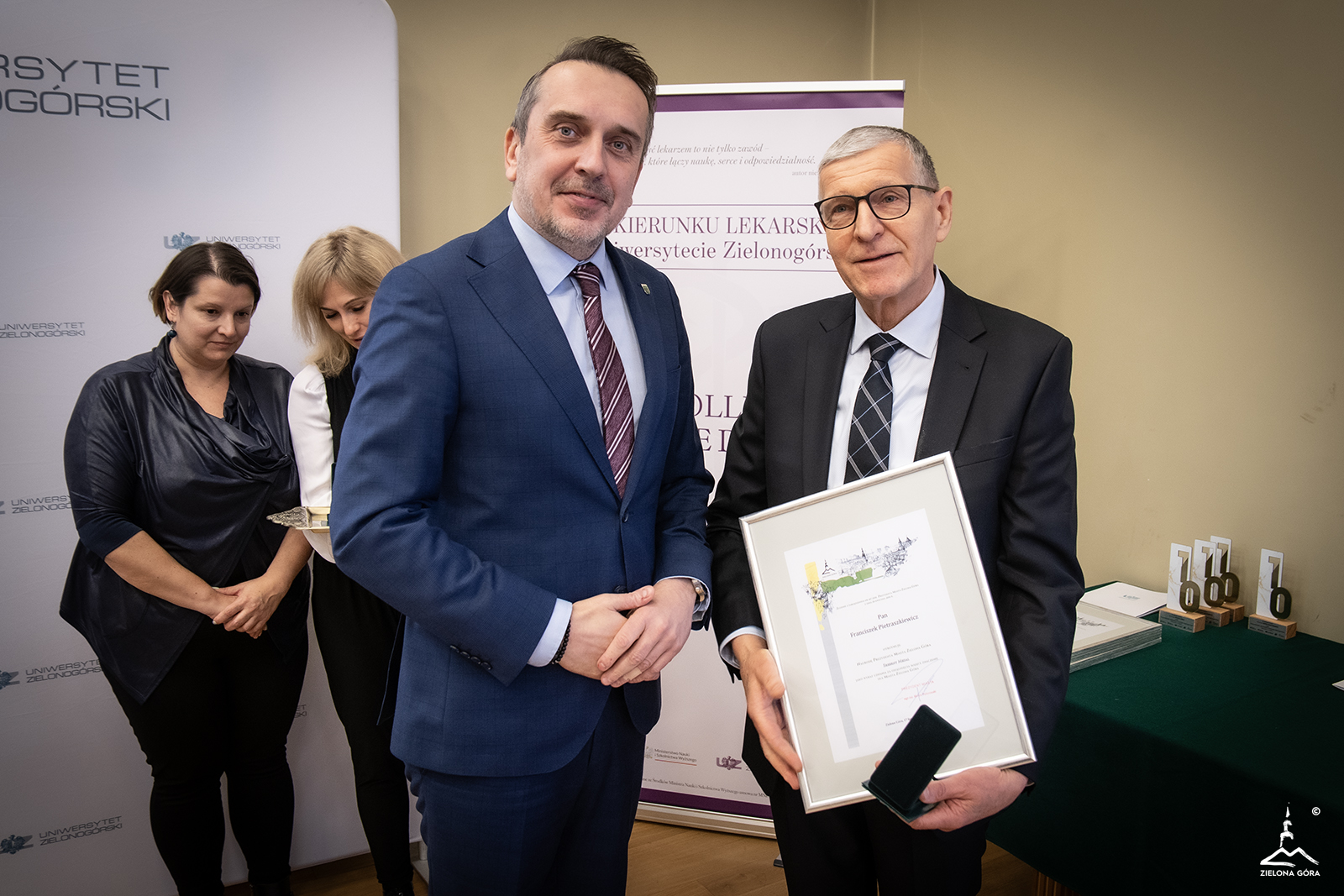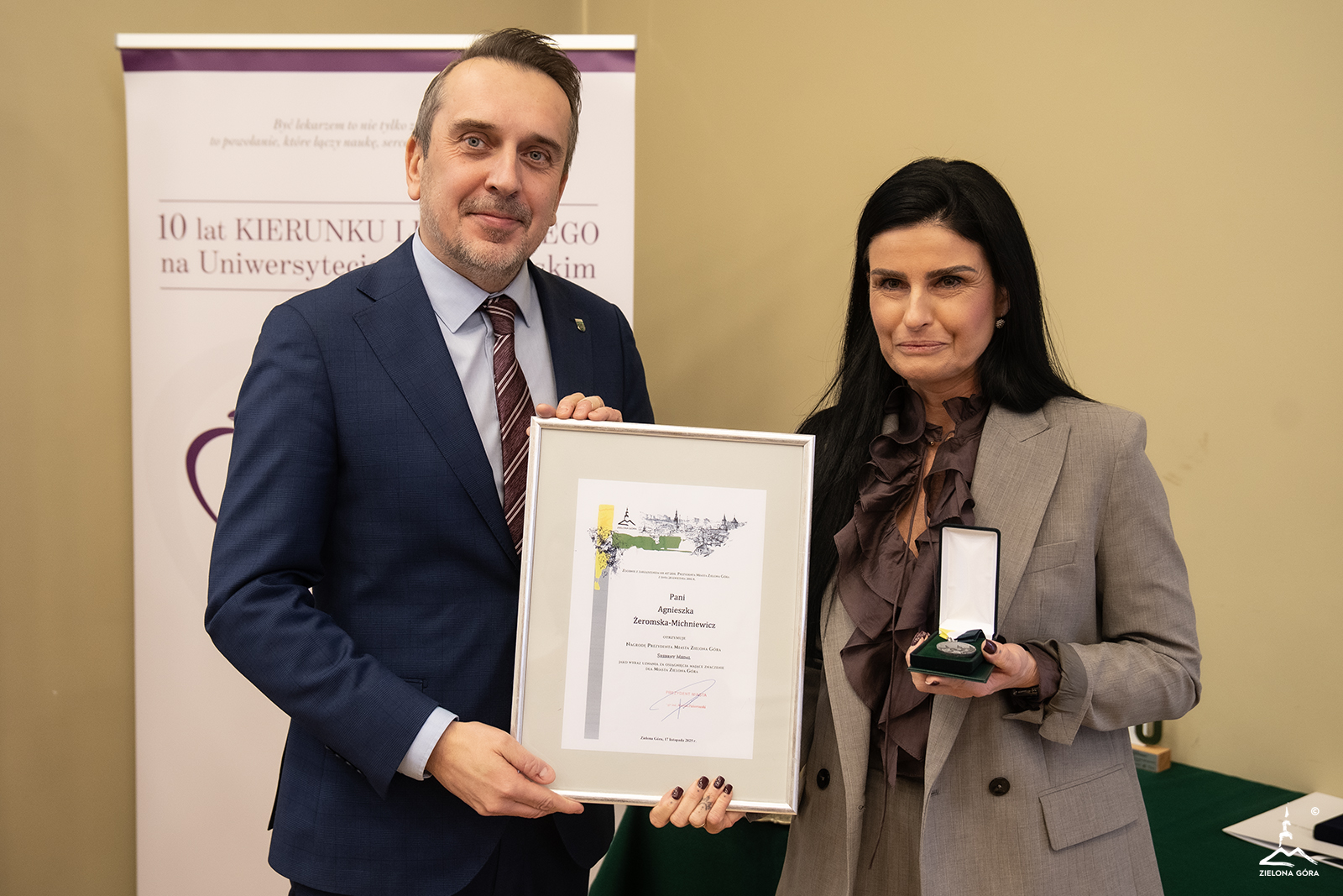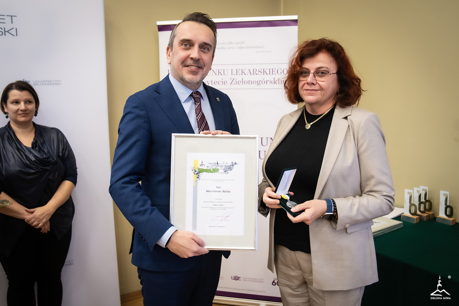 Jubileuszowa gala to także okazja przyznania Nagród Prezydenta Miasta osobom związanym z kierunkiem lekarskim za szczególne osiągnięcia dla Zielonej Góry. Z rąk prezydenta Marcina Pabierowskiego odebrali je: