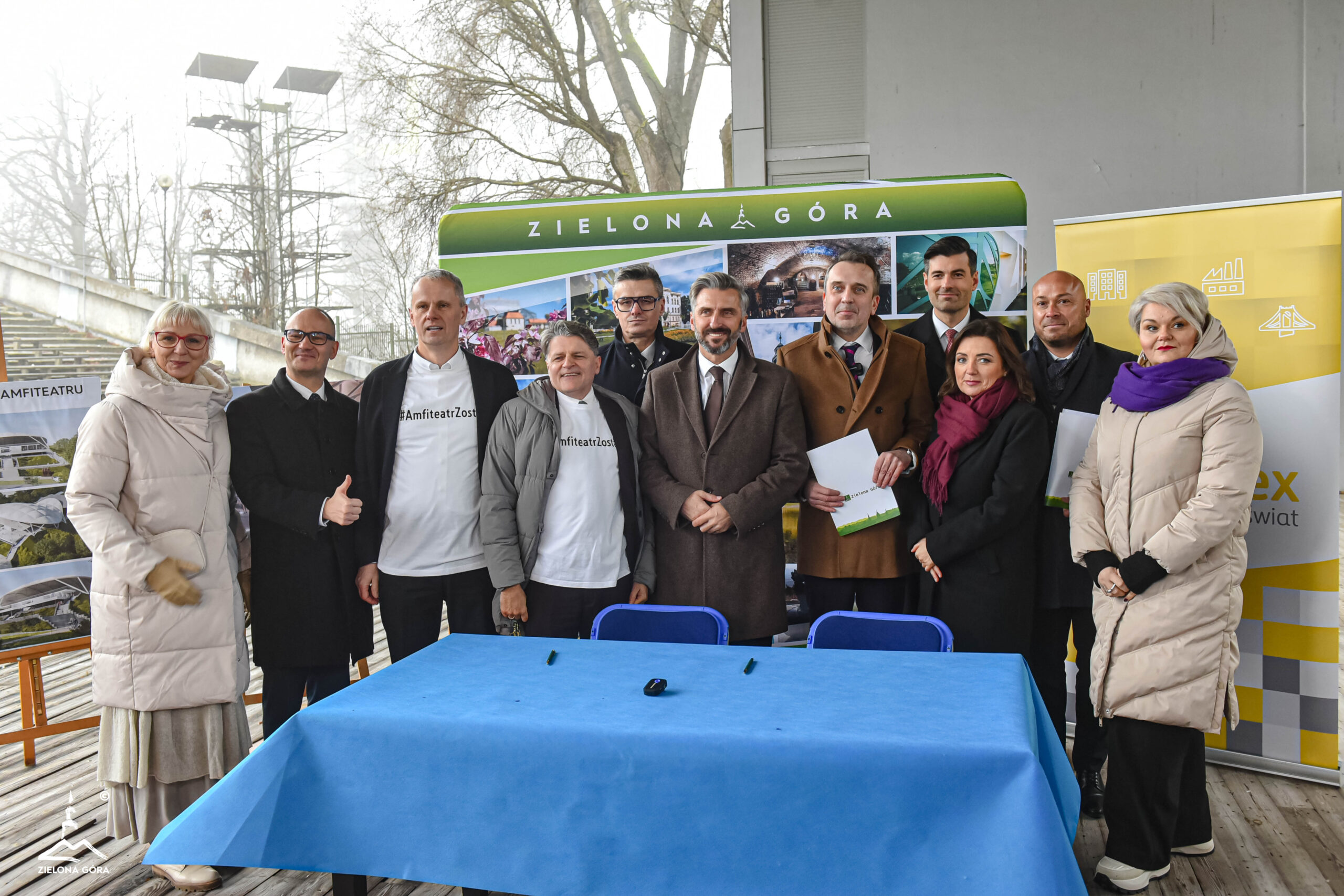 Historyczny moment! Na scenie starego amfiteatru prezydent Marcin Pabierowski w asyście m.in. posła Waldemara Sługockiego, marszałka Sebastiana Ciemnoczołowskiego, ale też radnych Koalicji Obywatelskiej podpisał umowę na przebudowę całego obiektu. – To będzie najpiękniejszy amfiteatr w Polsce – przekonuje prezydent Zielonej Góry.