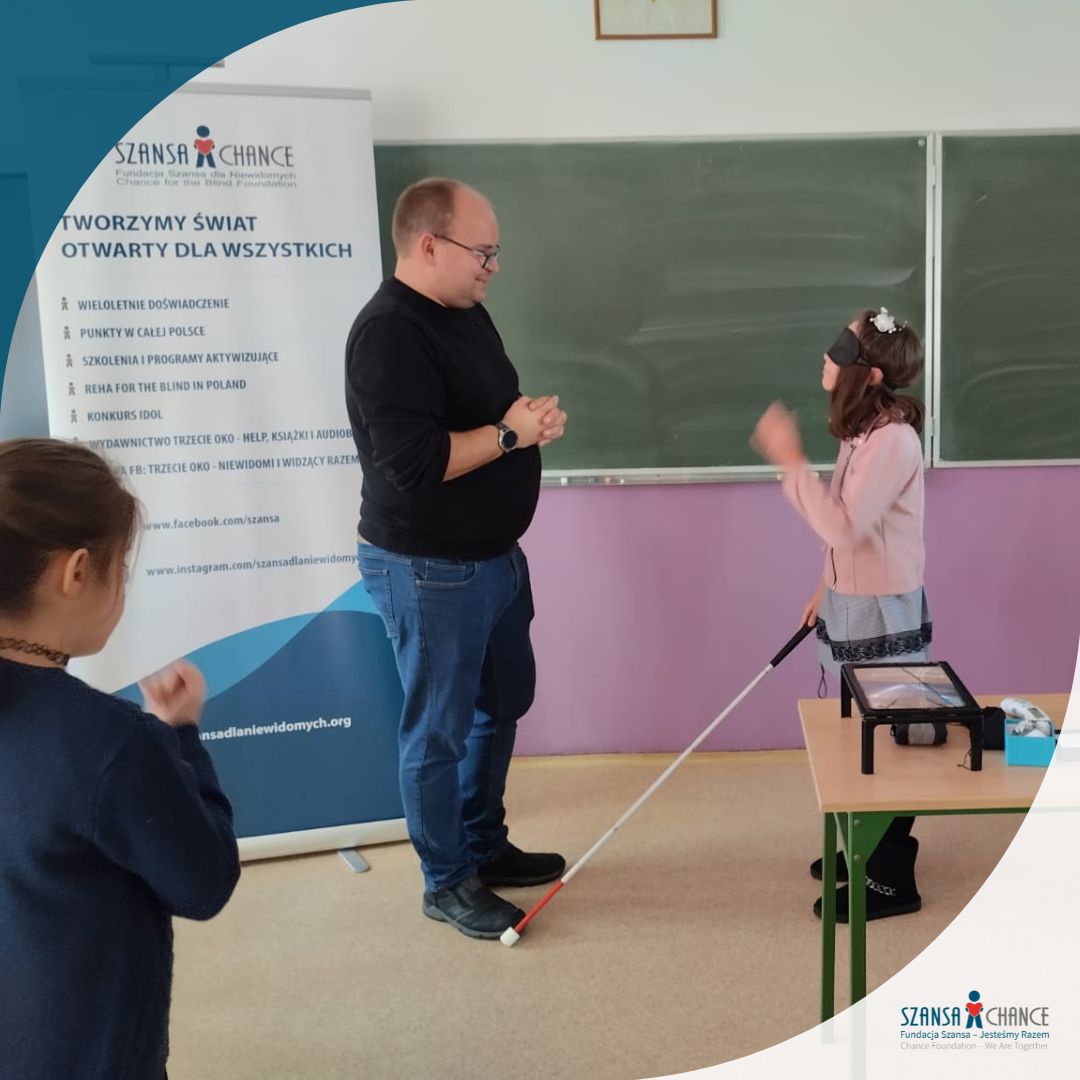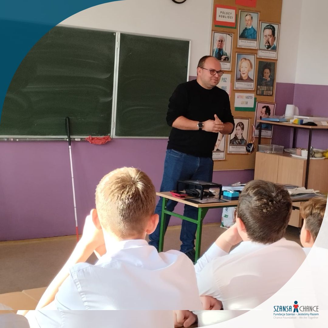 12 listopada 2025 r.,  przedstawiciele Biura Regionalnego Fundacji Szansa – Jesteśmy Razem z Zielonej Góry odwiedzili Szkołę Podstawową w Lubanicach. Spotkanie odbyło się z okazji obchodów Dnia Osób Niewidomych – ważnego święta, które przypomina, jak istotne jest budowanie świadomości o funkcjonowaniu osób z niepełnosprawnością wzroku już od najmłodszych lat.