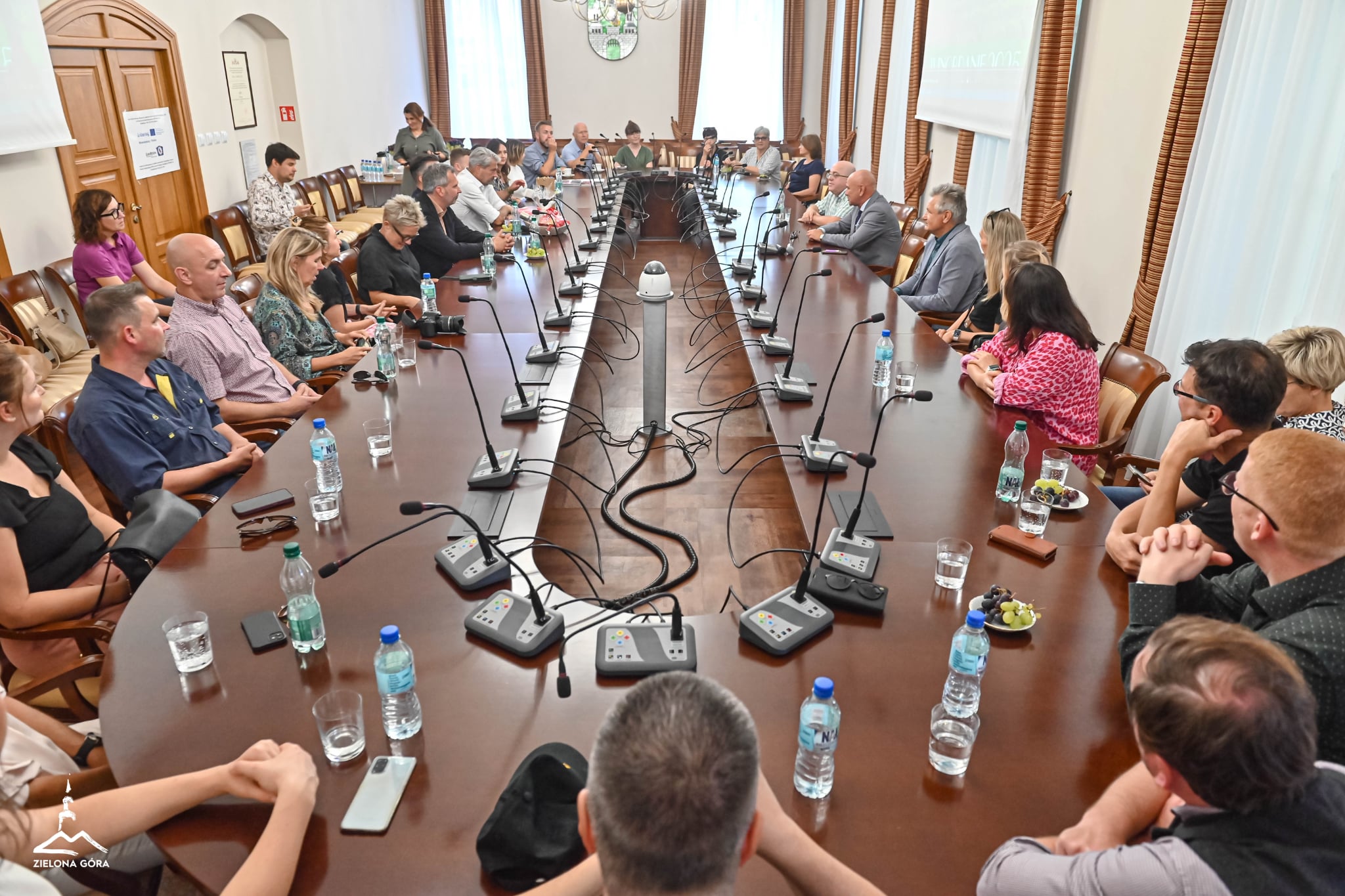 W sali sesyjnej ratusza delegację przywitał wiceprezydent Zielonej Góry Marek Kamiński. Podkreślał znaczenie współpracy między dwoma miastami, m.in. na polu kulturalnym, inwestycyjnym i edukacyjnym. Mówił o ostatnich dużych inwestycjach w Zielonej Górze, m.in. o podpisaniu wartej blisko 300 mln zł umowy na drugi etap projektu komunikacyjnego, a także o planach budowy nowej strefy gospodarczej.